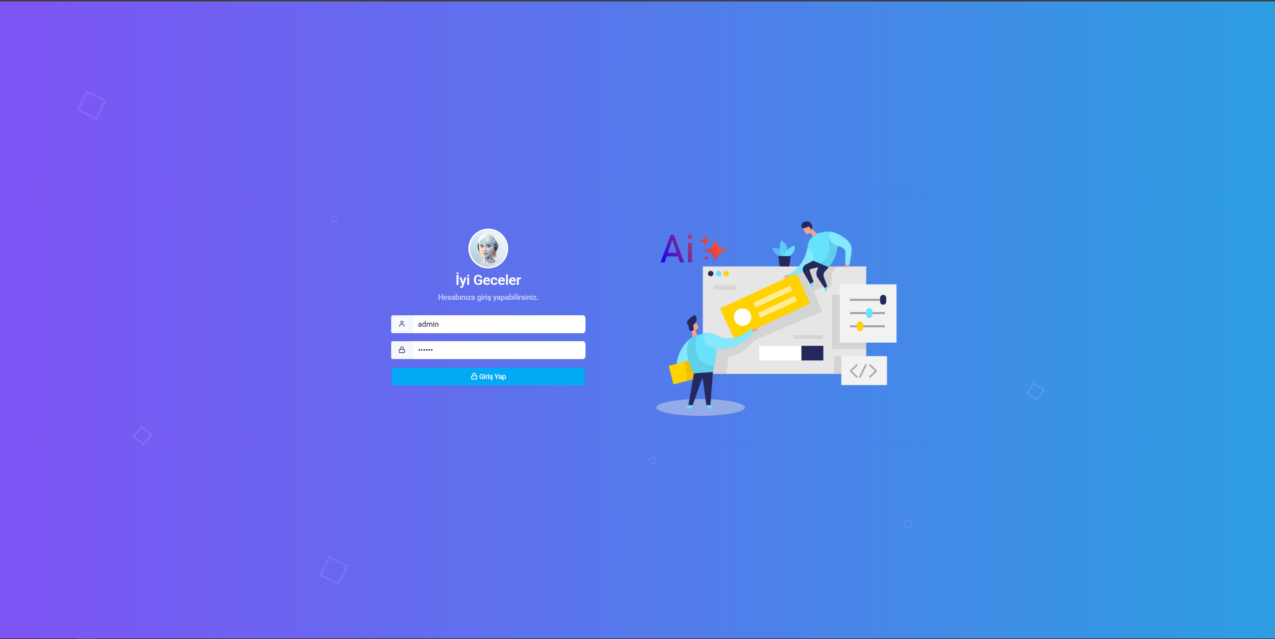 | Yapay Zeka Destekli Yönetim Paneli (Openai veya Geminiden Api Key almalısınız) | |